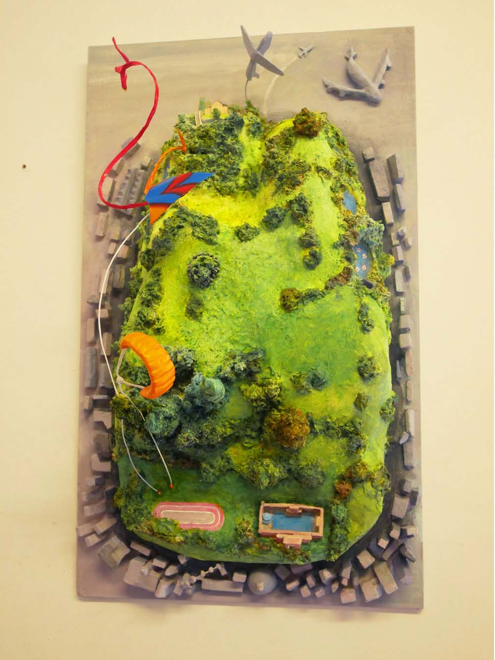 High Heath to Low ← Previous Next → High Heath to Low Hampstead Heath is like an oasis surrounded by the frenetic city below – gesso, papier mache pulp, mesh, paint, foam, wood Hampstead Heath is like an oasis surrounded by the frenetic city below gesso, papier mache pulp, mesh, paint, foam, wood